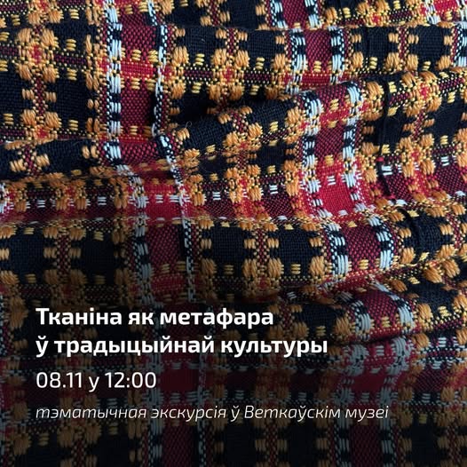 У суботу, 8 лістапада, у Веткаўскім музеі (той, што ў Ветцы) адбудзецца экскурсія-метафара “Тканіна як метафара ў традыцыйнай культуры”.