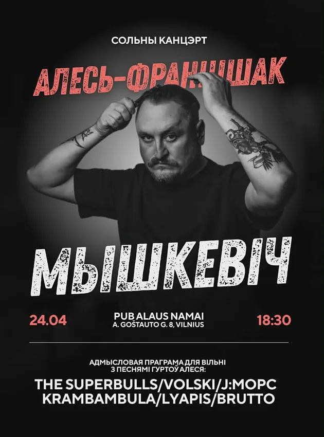 24 красавіка, у пятніцу, у Вільні грае сольны канцэрт Алесь Мышкевіч.