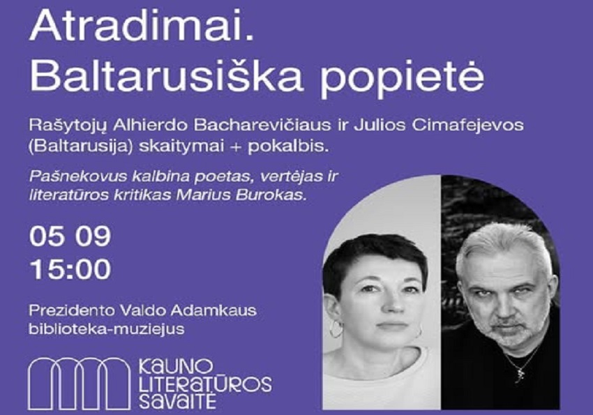 У пятніцу і суботу, 9 і 10 траўня, літаратары Альгерд Бахарэвіч і Юля Цімафеева бяруць удзел у Ковенскім літаратурным тыдні.