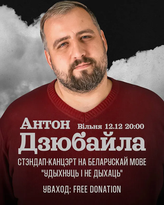 У пятніцу, 12 снежня, у Вільню завітае з беларускамоўным стэндапам "Удыхнуць і не дыхаць” комік Антон Дзюбайла.