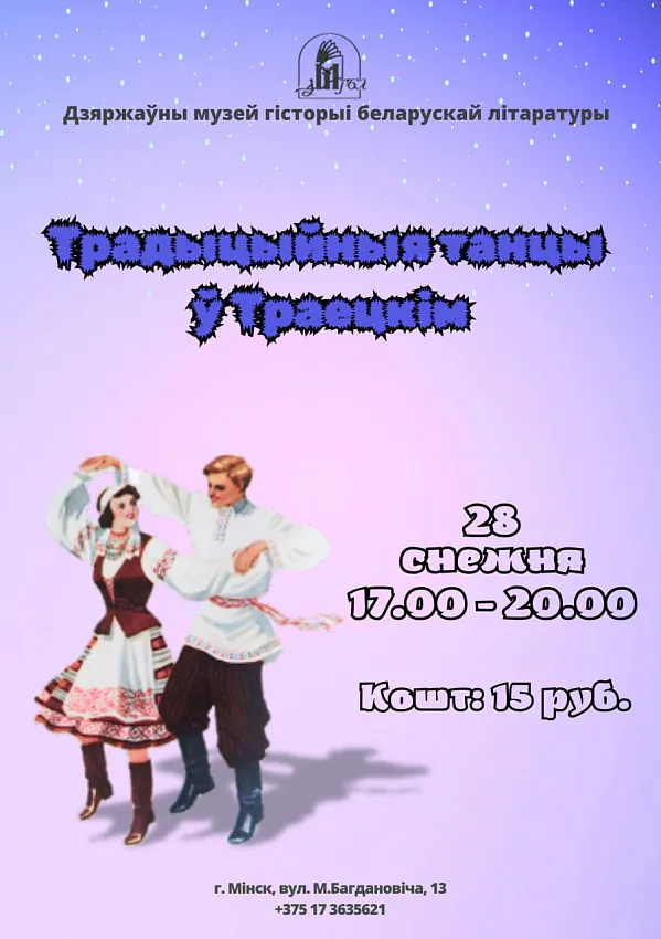 28 снежня ў музеі гісторыі беларускай літаратуры - вялікая вечарына традыцыйных танцаў.