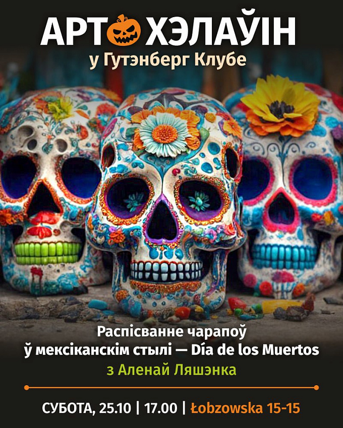 У суботу, 25 кастрычніка, "GUTENBERG CLUB" запрашае на ART-HALLOWEEN у мексіканскім стылі.