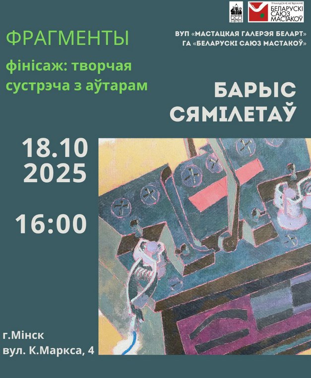 18.10.2025 16:00 - 19:00 Мастацкая галерэя БЕЛАРТ (вул. К. Маркса, 4) Бясплатна