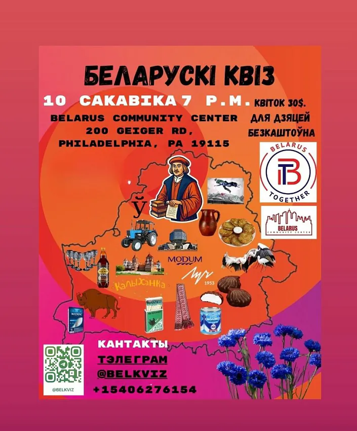 10.03.2026 19:00 - 21:00 Belarus Community Center (200 Geiger rd) 30 даляраў