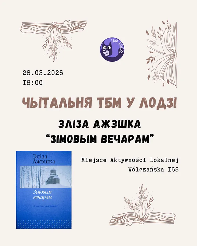 У суботу, 28 сакавіка, Таварыства беларускай мовы ў Лодзі запрашае на новую сустрэчу чытальні.