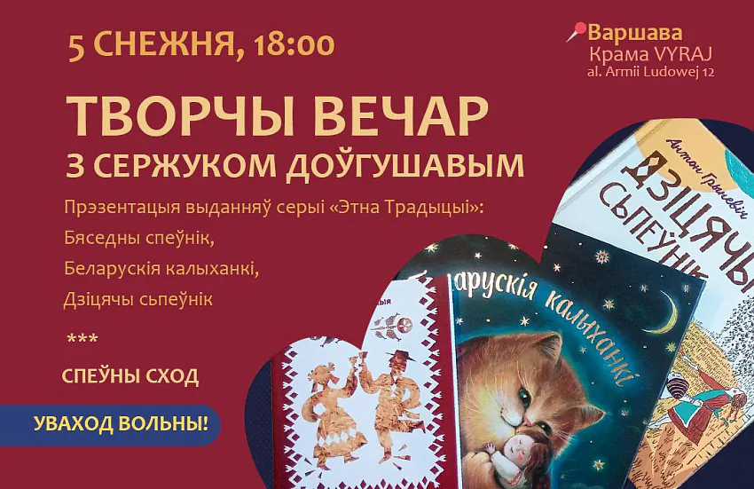 5 снежня ў Варшаве адбудзецца творчы вечар з <b>Сержуком Доўгушавым.