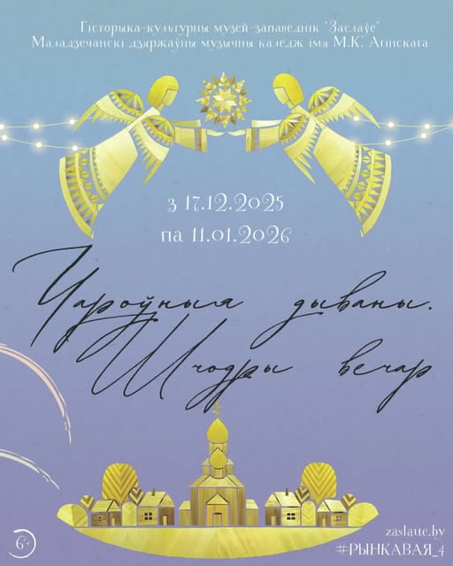 Надоечы ў музейным комплексе "Заслаўе" пачала працу выстава навучэнцаў Маладзечанскага музычнага каледжа імя Агінскага "Чароўныя дываны. Шчодры вечар", прымеркаваная да 30-х угодак цыклавой камісіі дэкаратыўна-прыкладнога мастацтва.