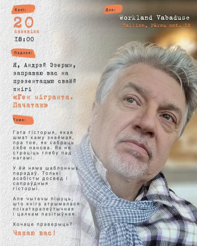 Прэзентацыя кнігі Андрэя Эзерына «Ген мігранта. Пачатак» ў Таліне