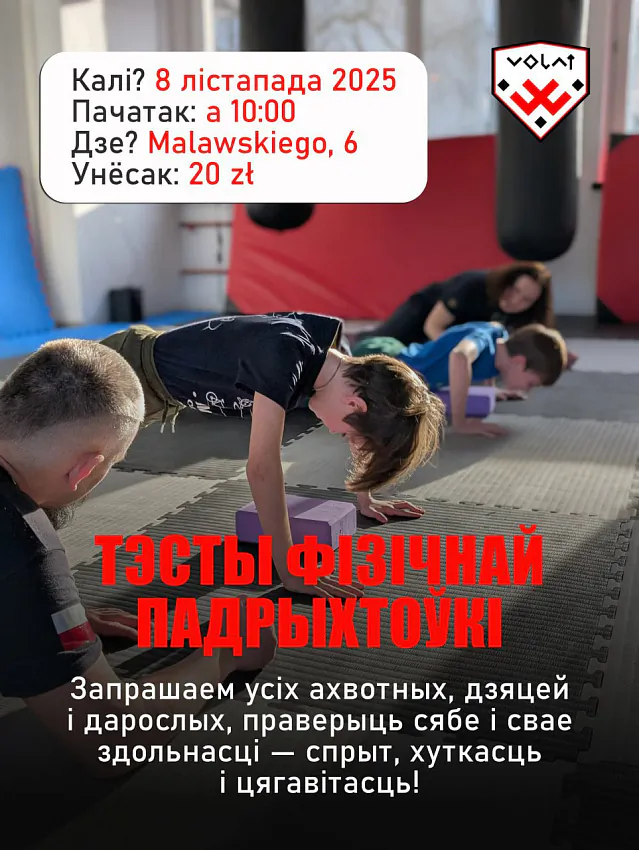 У суботу, 8 лістапада, спартыўны клуб «Волат» ладзіць у Варшаве восеньскае тэставанне фізічнай падрыхтоўкі.