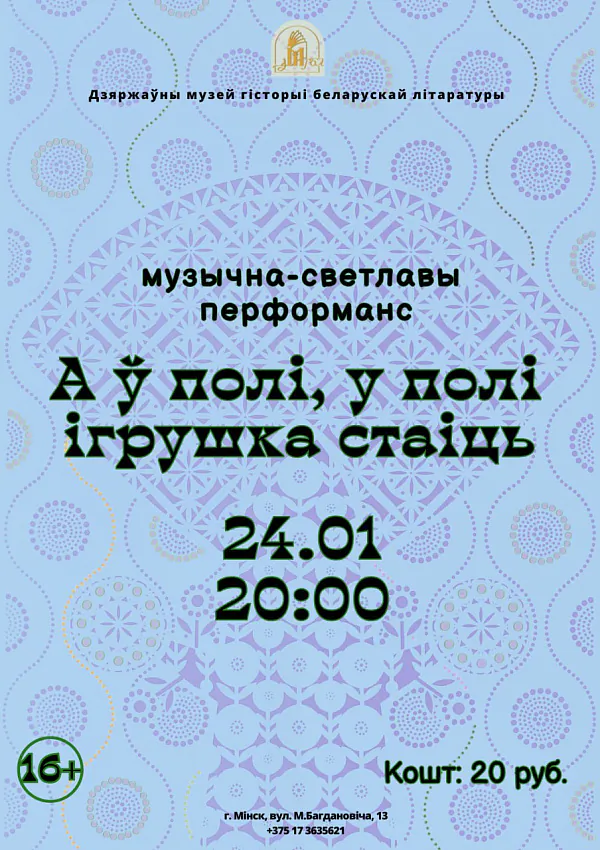 24.01.2026 20:00 - 21:00 Музей гісторыі беларускай літаратуры (вул. Багдановіча, 13) 20 рублёў