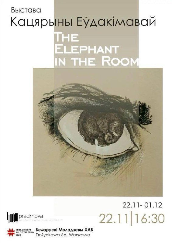 У суботу, 22 лістапада, у Беларускім Моладзевым Хабе адкрываецца выстава Кацярыны Еўдакімавай “The Elephant in the Room” паводле рамана Сашы Філіпенкі "Слон".