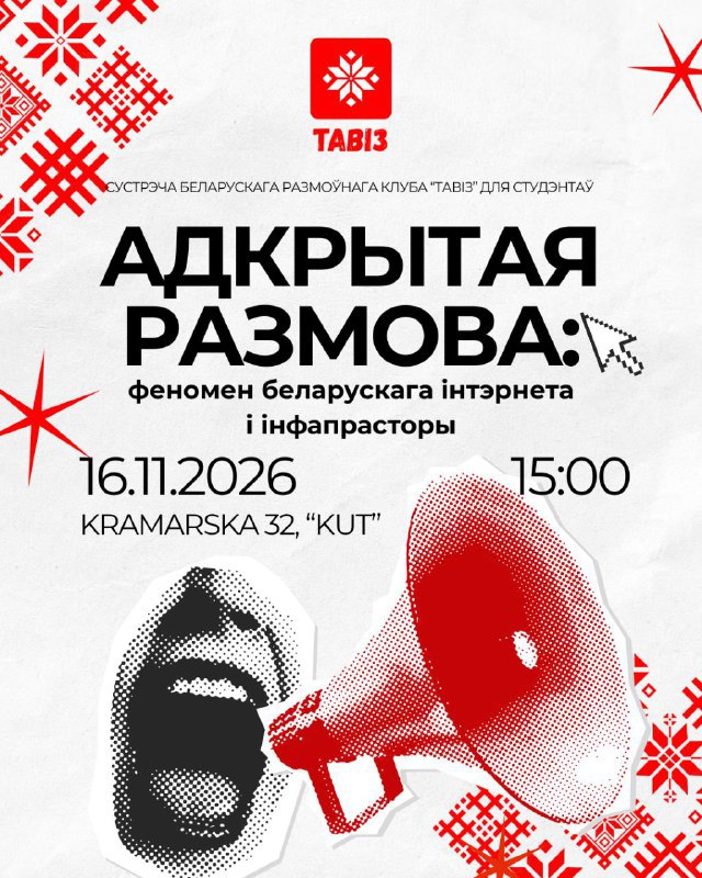 16.11.2025 15:00 - 17:00 Фундацыя КУТ (Крамарска, 32) Бясплатна