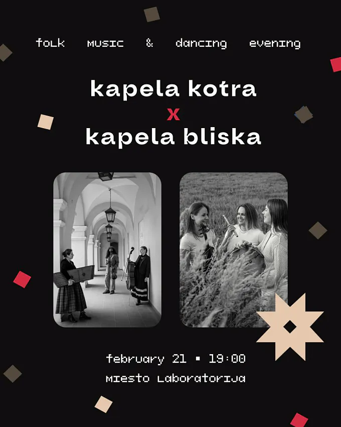 У суботу, 21 лютага, капэла "Kotra" і капэла "Bliska" запрашаюць на вечар традыцыйнай музыкі і танца.