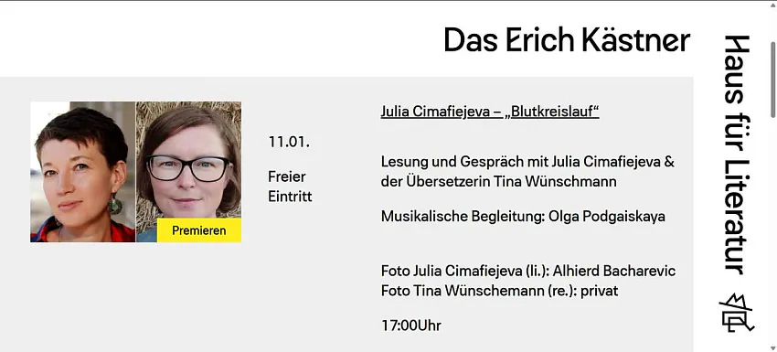 11 студзеня, у нядзелю, у Дрэздэне адбудзецца прэзентацыя паэтычнага зборніка Юлі Цімафеевай "Кровазварот".
