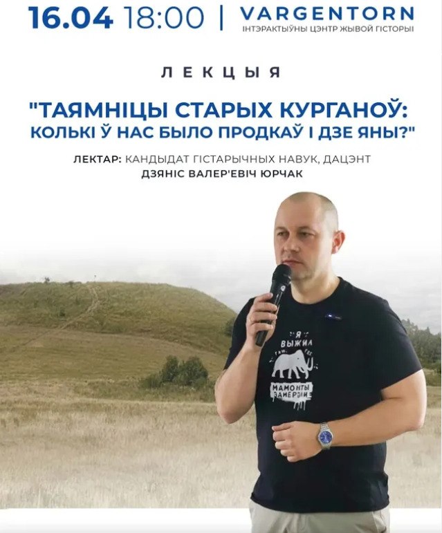 У чацвер, 16 красавіка, цэнтр жывой гісторыі «VARGENTORN» запрашае на лекцыю кандыдата гістарычных навук Дзяніса Юрчака «Таямніцы старых курганоў: колькі ў нас было продкаў і дзе яны?»