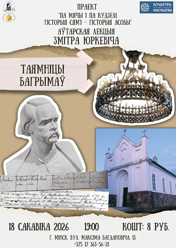 У сераду, 18 сакавіка, даследчык Зміцер Юркевіч чытае ў музеі гісторыі беларускай літаратуры лекцыю "Таямніцы Багрымаў".