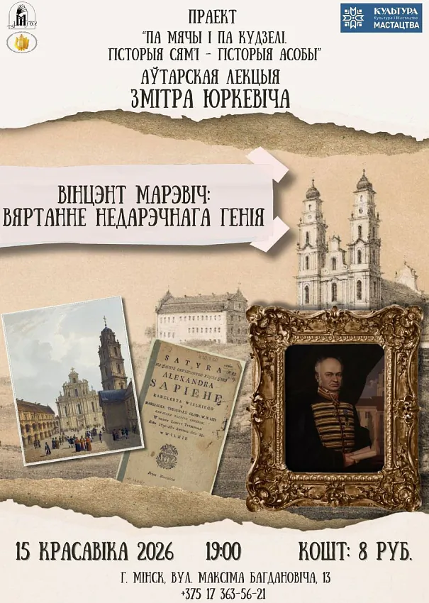 У сераду, 15 красавіка, даследчык Зміцер Юркевіч чытае ў музеі гісторыі беларускай літаратуры лекцыю «Вінцэнт Марэвіч: вяртанне недарэчнага генія».