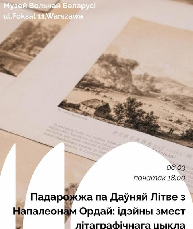 У пятніцу, 6 сакавіка, у Музеі Вольнай Беларусі адбудзецца лекцыя-сустрэча «Падарожжа па Даўняй Літве з Напалеонам Ордай: ідэйны змест літаграфічнага цыклу».