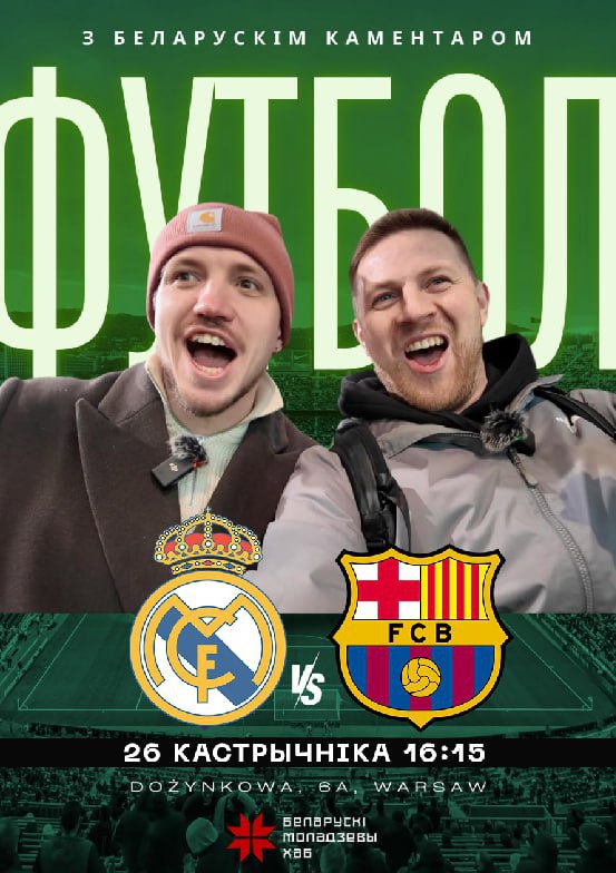 У нядзелю, 26 кастрычніка, у Беларускім Моладзевым Хабе глядзяць матч іспанскага класіка "Рэал - Барселона".