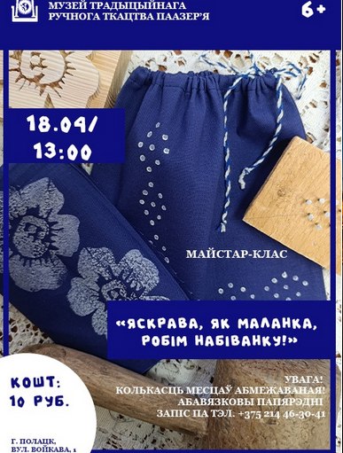 У суботу, 18 красавіка, у полацкім музеі традыцыйнага ручнога ткацтва Паазер’я ладзяць майстар-клас па дэкараванні тканіны «Яскрава, як маланка, робім набіванку!»