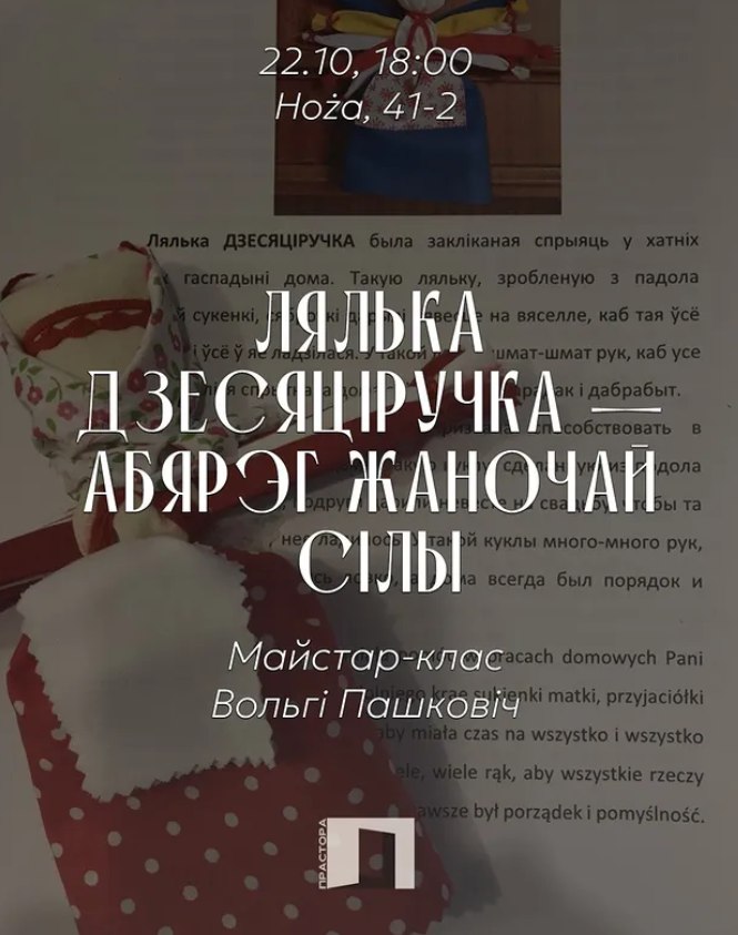 У сераду, 22 кастрычніка, у Варшаве адбудзецца майстар-клас Вольгі Пашковіч “Лялька дзесяціручка - абярэг жаночай сілы”.