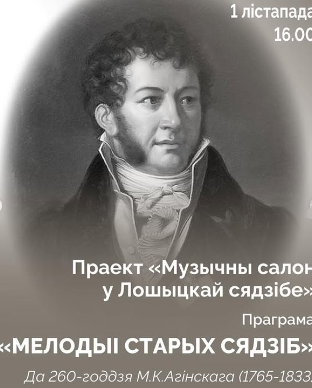 У суботу, 1 лістапада, у Лошыцкім маёнтку адбудзецца імпрэза «Мелодыі старых сядзіб» да 260-годдзя Міхала Клеафаса Агінскага.