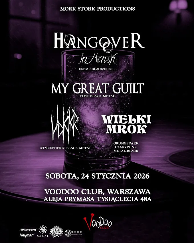 У суботу, 24 студзеня, беларускія гурты "Hangover in Minsk" (dsbm/black’n’roll) "My Great Guilt" (post black metal) i "Vokkr" (atmospheric black metal) граюць супольны канцэрт у Варшаве.