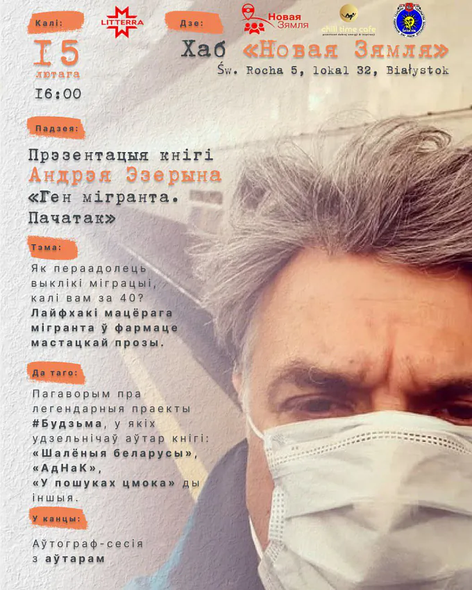 Як пераадолець выклікі міграцыі, калі вам за 40? Лайфхакі кансультанта па стратэгічных камунікацыях у фармаце мастацкай прозы. Даведайцеся на сустрэчы з аўтарам Андрэям Эзерыным.