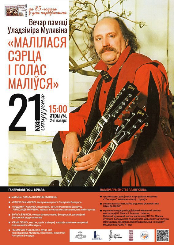У сераду, 21 студзеня, у Нацыянальнай бібліятэцы адбудзецца вечар памяці Уладзіміра Мулявіна «Малілася сэрца і голас маліўся» да 85-годдзя з дня нараджэння песняра.