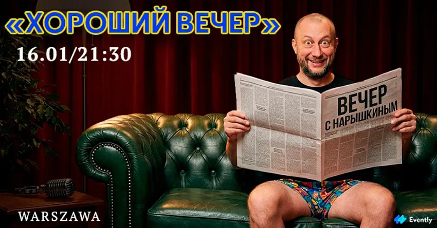 16 студзеня, у пятніцу, комік Дзіма Нарышкін дае ў Варшаве стэндап «Добры вечар».