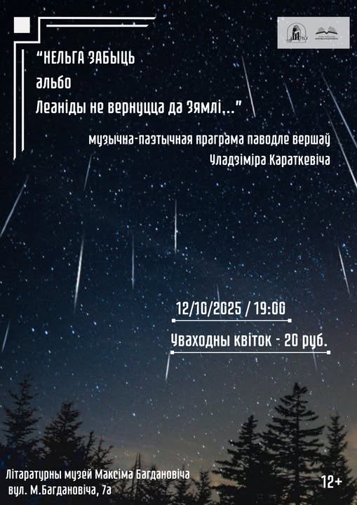 12.10.2025 19:00 - 21:00 Музей Максіма Багдановіча (вул. Багдановіча, 7а) 20 рублёў