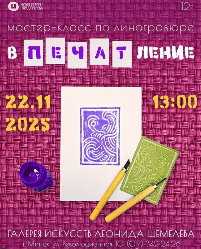 Як заўсёды, вас чакае творчы працэс, а таксама займальны аповед і прэзентацыя пра гісторыю паходжання лінагравюры ад мастачкі і мастацтвазнаўцы Марыі Гапіенка.