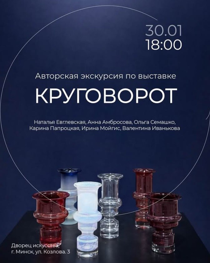 У пятніцу, 30 студзеня, у палацы мастацтваў ладзяць аўтарскую экскурсію па выставе-конкурсе дэкаратыўнага мастацтва "Кругаварот". ⠀ Выставу прадставяць самі мастакі ў фармаце жывых зносін з гледачамі.