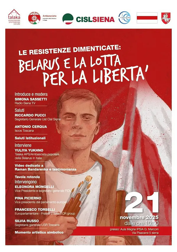 У пятніцу, 21 лістапада, у Сіене адбудзецца імпрэза "Le resistenze dimenticate: Беларусь і барацьба за свабоду".