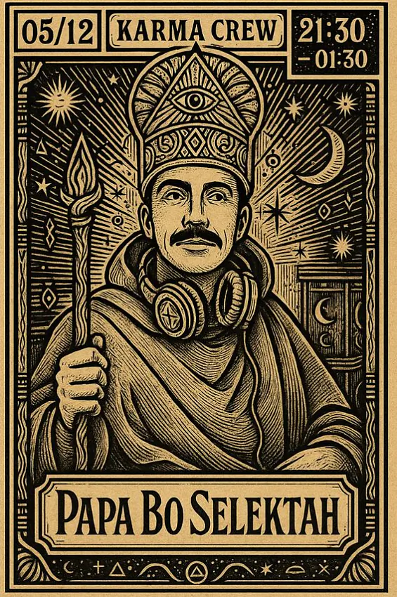 У пятніцу, 5 снежня, у бары "Карма" дае дыджэй-сэт аўдыёчарнакніжнік, містыфікатар і сертыфікаваны гукавы алхімік Папа Бо.
