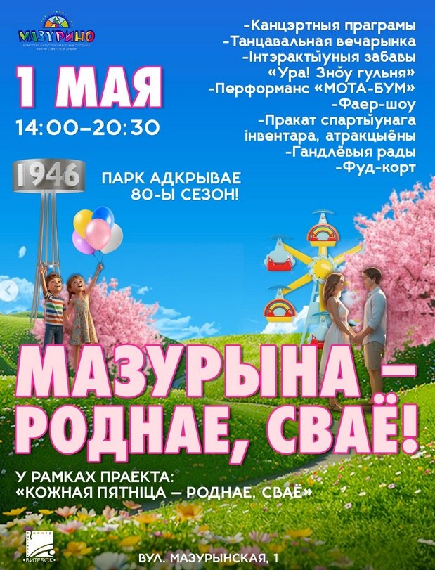 01.05.2026 14:00 - 20:30 парк Мазурына Бясплатнае