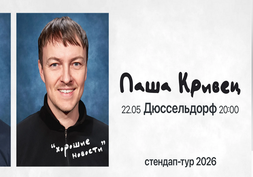 22 траўня, у пятніцу, у Дзюсельдорфе з сольным стэндапам выступае комік Паша Крывец