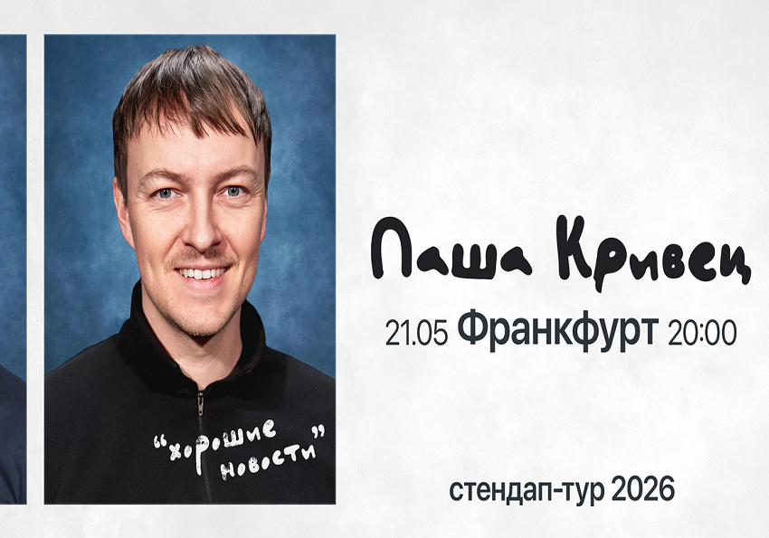 21 траўня, у чацвер, у Франкфурце з сольным стэндапам выступіць комік Паша Крывец