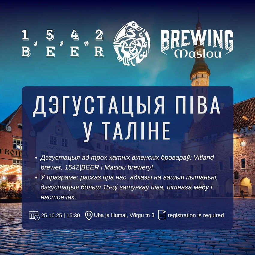 У суботу, 25 кастрычніка, у Таліне ладзяць дэгустацыю піва.