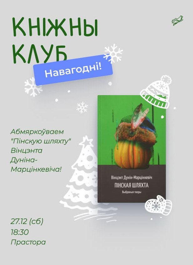 Гэтым разам прапануюць абмеркаваць "Пінскую шляхту" Вінцэнта Дуніна-Марцінкевіча. ‌ А паколькі паседжанне будзе святочным, яшчэ і згуляюць у Таемнага Санту. Па-беларуску, вядома.