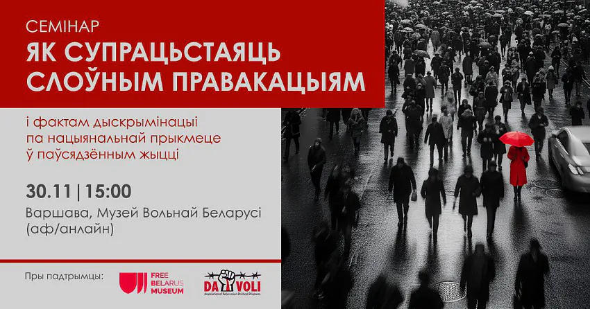 30 лістапада ў Варшаве і анлайн адбудзецца семінар „Як супрацьстаяць слоўным правакацыям і фактам дыскрымінацыі па нацыянальнай прыкмеце ў паўсядзённым жыцці“.