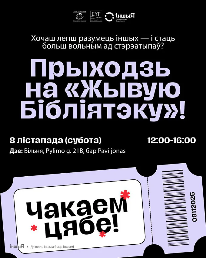 8 лістапада ўдзельні_цы курса «Рабі смела», ад арганизации «Іншыя», прадстаўляюць свой першы праект — «Жывую бібліятэку» ў Вільні.