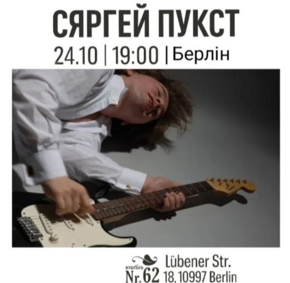 24 кастрычніка, у пятніцу, у Берліне грае канцэрт легенда беларускай андэграўнднай сцэны Pukst, ён жа музыка-авангардыст Сяргей Пукст.