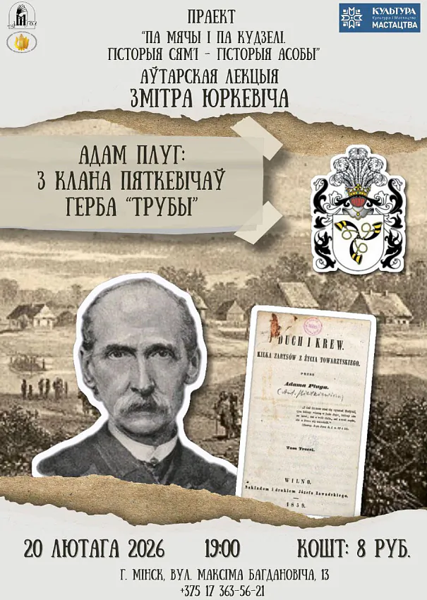У пятніцу, 20 лютага, даследчык Зміцер Юркевіч чытае ў музеі гісторыі беларускай літаратуры лекцыю "Адам Плуг: з клана Пяткевічаў герба "Трубы"".