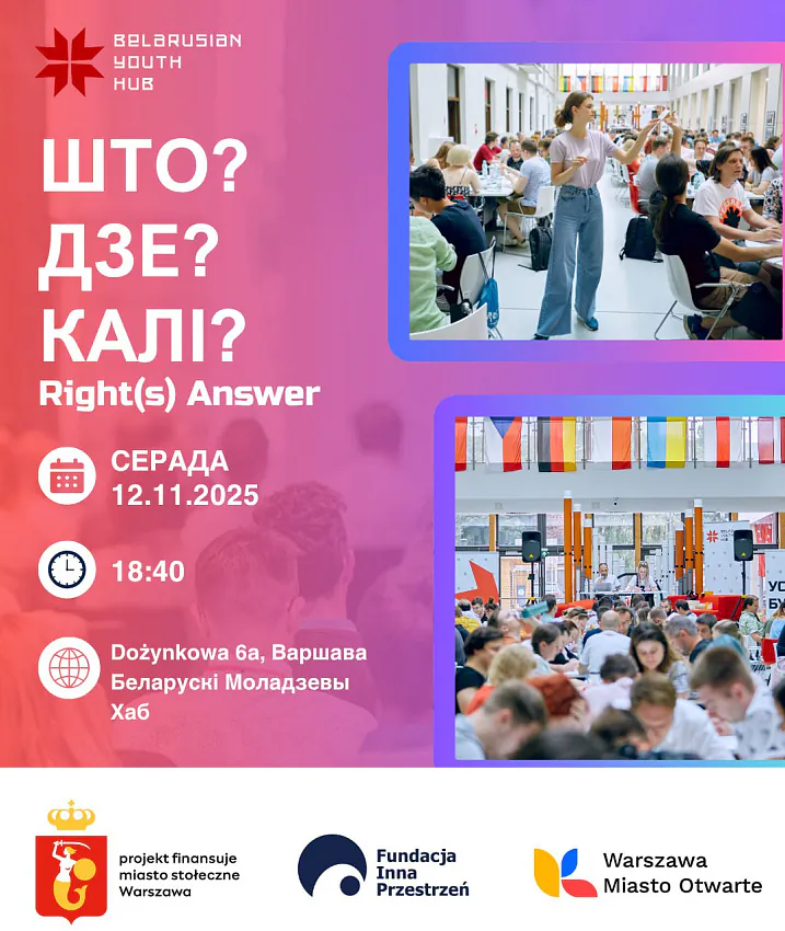 12.11.2025 18:40 - 20:40 Беларускі Моладзевы Хаб (Dożynkowa 6A) Бясплатнае