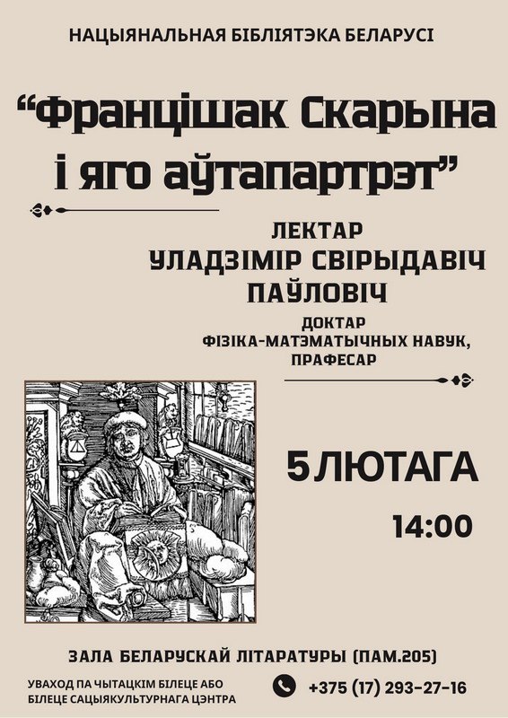 У чацвер, 5 лютага, у Нацыянальнай бібліятэцы адбудзецца лекцыя "Францішак Скарына і яго аўтапартрэт".