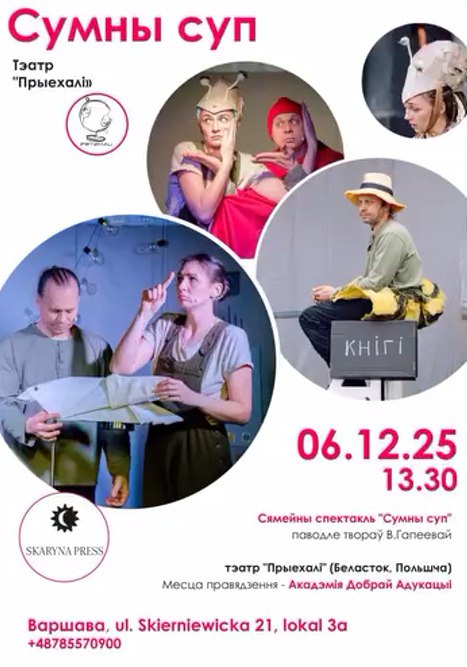 У суботу, 6 снежня, тэатр "Прыехалі" грае ў Варшаве спектакль "Сумны суп" паводле апавяданняў Вольгі Гапеевай.