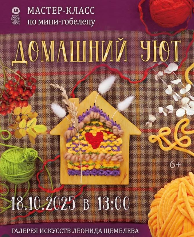 У суботу, 18 кастрычніка, у галерэі Шчамялёва адбудзецца майстар-клас па стварэнні міні-габелена "Хатняя ўтульнасць".