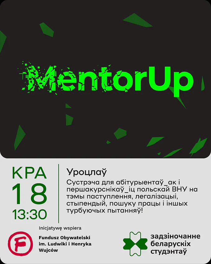 У суботу, 18 красавіка, ва Уроцлаве адбудзецца <b>сустрэча для абітурыентаў і першакурснікаў польскіх ВНУ MentorUp.