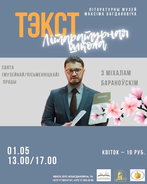 У пятніцу, 1 траўня, у музеі Максіма Багдановіча адбудзецца новая сустрэча літаратурнай школы «Тэкст», прысвечаная святу (музейнай/пісьменніцкай) працы.